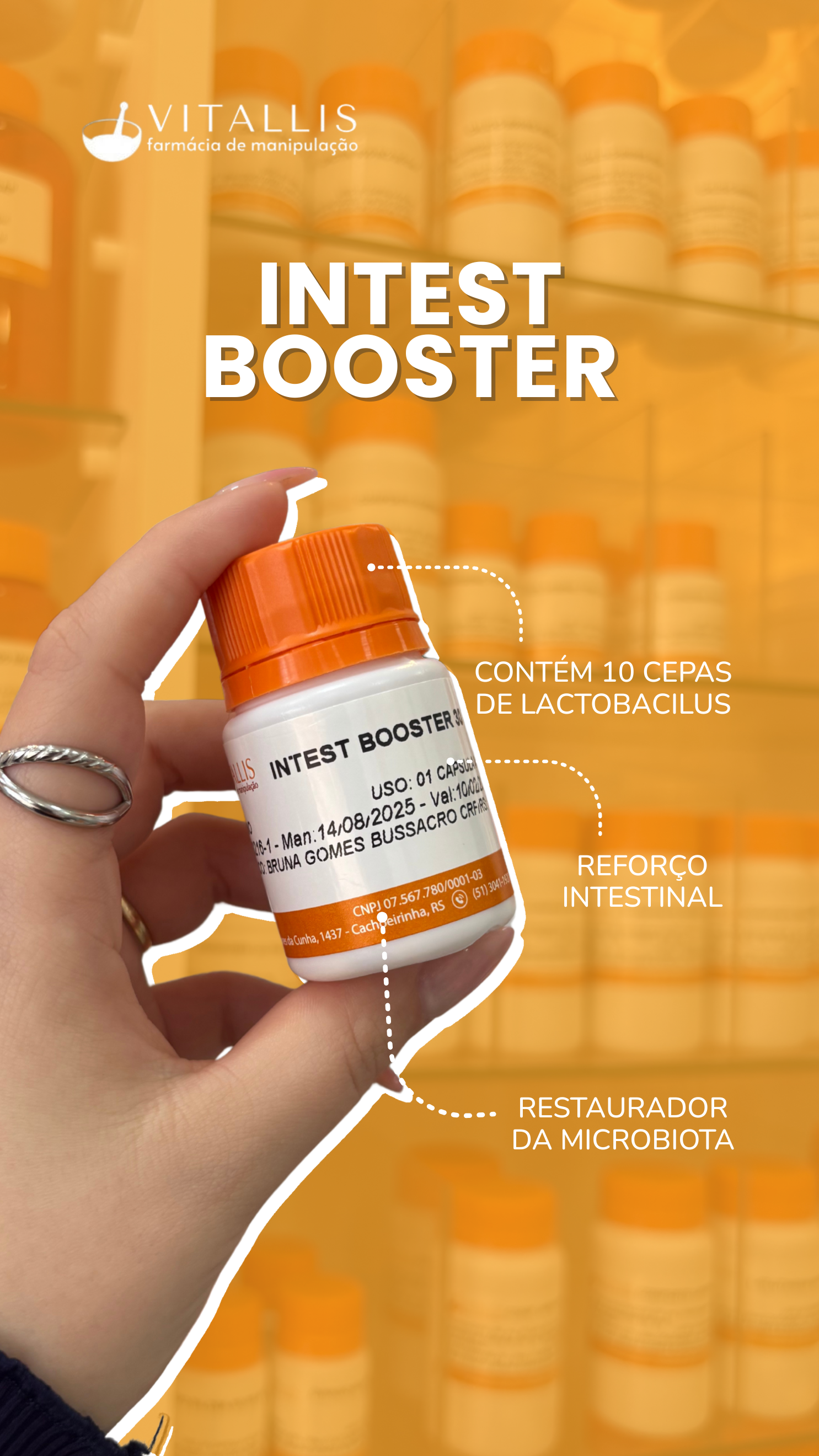 Intest Booster é um fitoterápico formulado para auxiliar no bom funcionamento do intestino, aliviando desconfortos como inchaço, prisão de ventre, gases e sensação de estufamento.