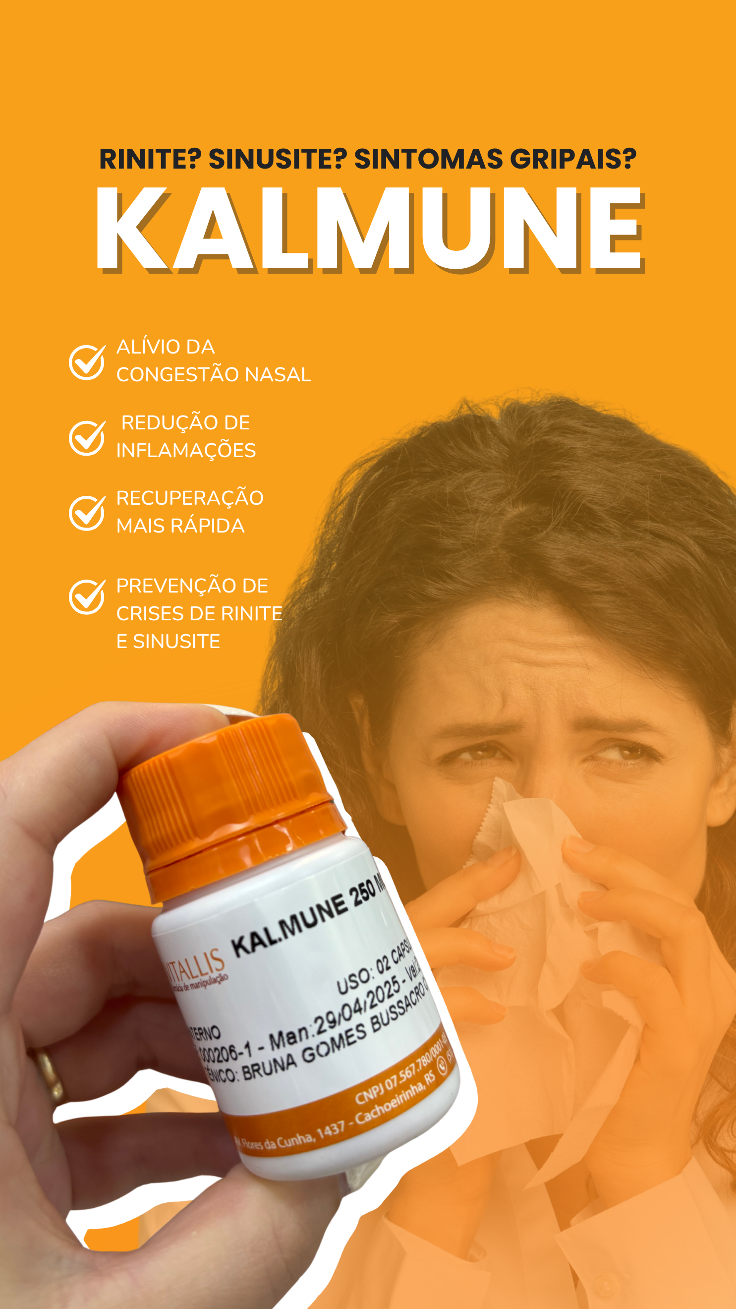 Kalmune é um fitoterápico natural que ajuda a aliviar os sintomas da rinosinusite, como congestão nasal, dor de cabeça, pressão no rosto, secreção e dificuldade para respirar.